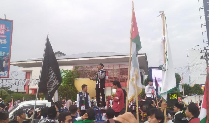 Dalam aksi tersebut, massa menyampaikan orasi kemanusiaan, mengungkapkan dukungan mereka kepada Palestina, dan mengecam Israel atas serangan biadab yang dilakukan terhadap rakyat Palestina. Koordinator aksi, Ricky Pratama, menjelaskan bahwa aksi ini merupakan respons terhadap eskalasi konflik di Palestina, di mana tentara Israel didampingi oleh pasukan dari Amerika dan Inggris melakukan pengepungan terhadap umat Islam di Palestina.