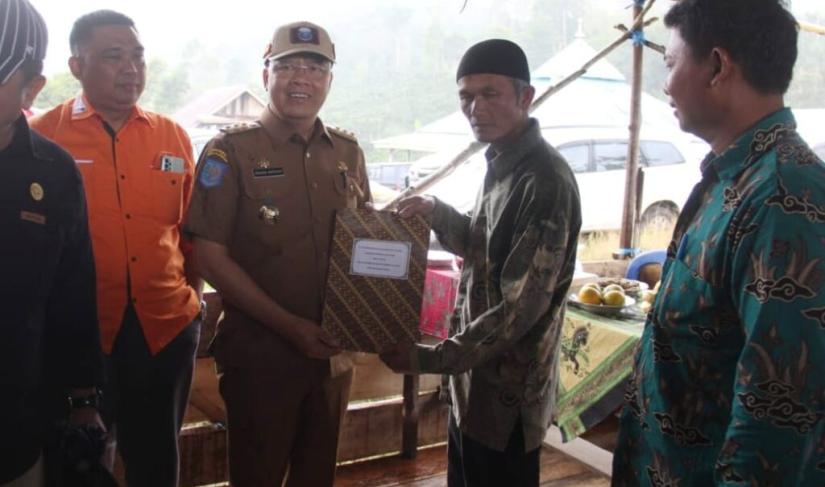 PENA RAFFLESIA - Gubernur Bengkulu Rohidin Mersyah kali ini mengunjungi perbatasan Kabupaten Lebong dan Rejang Lebong untuk menyerahkan secara langsung SK Izin Perhutanan Sosial untuk Desa Bio Sengok Kecamatan Rimbo Pengadang Kabupaten Lebong dan Desa Air Bening Kecamatan Bermani Ulu Kabupaten Rejang Lebong, Selasa (6/12/2022).
