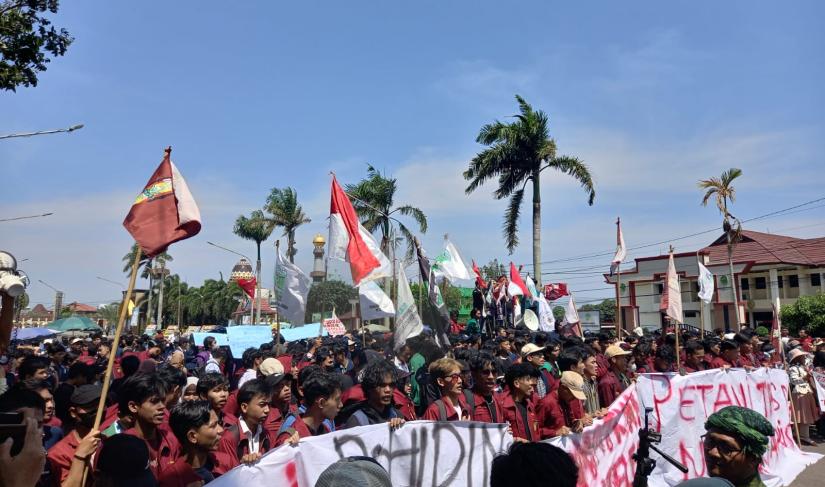 Penarafflesia.com - Hari Tani Nasional di Bengkulu diwarnai dengan aksi unjuk rasa ratusan massa di depan Perkantoran Gubernur Bengkulu, Selasa (26/9/23).