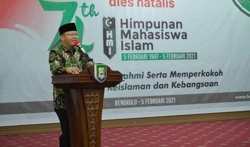 Bengkulu - Gubernur Bengkulu Rohidin Mersyah menyampaikan selamat atas Dies Natalis Himpunan Mahasiswa Islam (HMI) ke 74. Dikatakannya, HMI adalah mitra penyeimbang pemerintah yang saling bersinergi, dan memberikan kritik serta masukan dalam membangun daerah.
