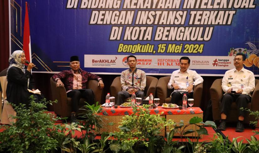 Bengkulu - Kantor Wilayah Kementerian Hukum dan HAM Bengkulu menyelenggarakan Sosialisasi Kerjasama Pemantauan dan Pengawasan di Bidang Kekayaan Intelektual dengan Instansi terkait di Kota Bengkulu, Rabu (15/05/2024). Bertempat di Hotel Santika, kegiatan dibuka oleh Kepala Kantor Wilayah yang dalam hal ini diwakili Kepala Divisi Pelayanan Hukum dan HAM, Andrieansjah yang menyampaikan bahwa Pemantauan/Pengawasan terhadap karya Kekayaan Intelektual merupakan tugas bersama. Sinergi dan kolaborasi antara Pemerintah Daerah Provinsi/Kabupaten/Kota Se-Provinsi Bengkulu dan Aparat Penegak Hukum sangat diperlukan untuk meminimalisir permasalahan hukum dan kerugian pada masyarakat dari pelanggaran Kekayaan Intelektual.