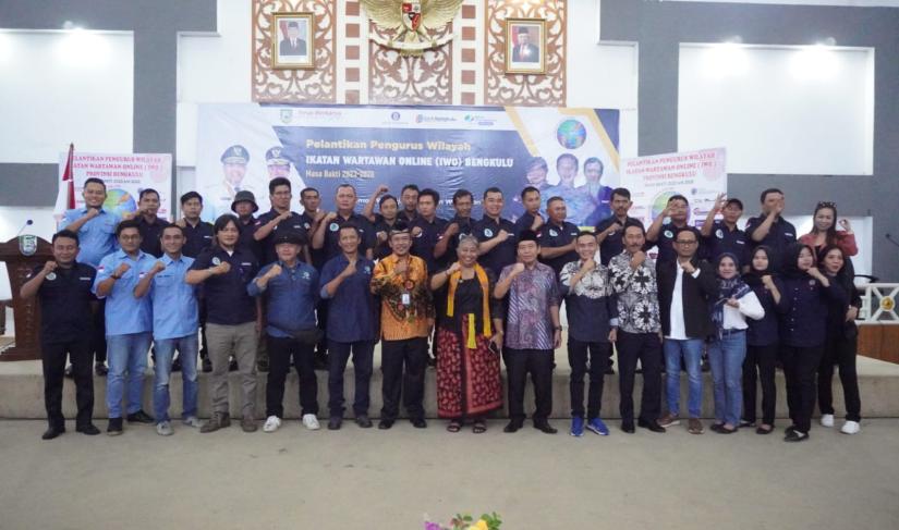 Penarafflesia.com - Kadis Kominfotik Provinsi Bengkulu, yang diwakili oleh Kabid Mediatik Kominfotik Henri, hadir pada Pelantikan Pengurus Wilayah Ikatan Wartawan Online (PW IWO) masa bhakti 2023-2028, di Gedung Serbaguna Pemprov Bengkulu, Sabtu (16/09).