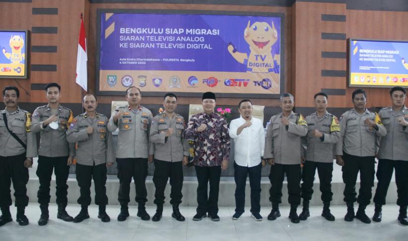 “Karena Bhabinkamtibmas adalah jajaran anggota kepolisian yang betul-betul berada di tengah-tengah masyarakat. Sehingga diharapkan akan lebih efektif menyampaikan terkait migrasi siaran ini,” jelas Gubernur Rohidin usai hadir dan berikan sambutan pada Sosialisasi Bengkulu Siap Migrasi Siaran Televisi Analog ke Siaran Televisi Digital di Gedung Aula Endra Dharma Laksana Polres Kota Bengkulu, Selasa (04/10).