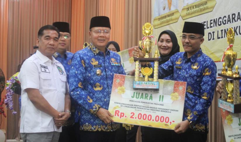 Hal tersebut disampaikan Gubernur Rohidin saat memberikan hadiah pemenang Perpustakaan Khusus Perangkat Daerah di Lingkungan Pemerintah Provinsi Bengkulu yang digelar oleh Dinas Perpustakaan dan Kearsipan Provinsi Bengkulu di Hotel Bougenville, Selasa (17/10/2023).