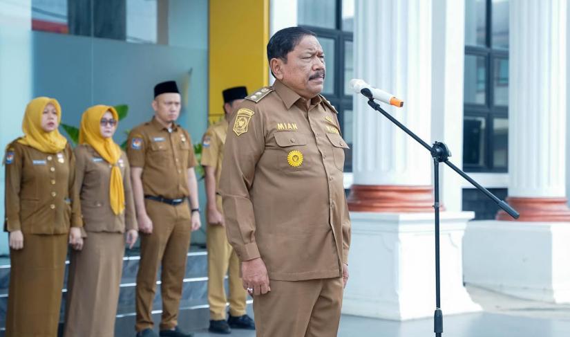Bengkulu - Wakil Gubernur Bengkulu, Mian, memimpin apel bersama Aparatur Sipil Negara (ASN) di lingkungan Dinas Pekerjaan Umum dan Penataan Ruang (PUPR) Provinsi Bengkulu, Senin (13/10). Apel tersebut turut dihadiri Asisten II Setda Provinsi Bengkulu, R.A. Denny, dan Kepala Dinas PUPR Provinsi Bengkulu, Tejo Suroso.