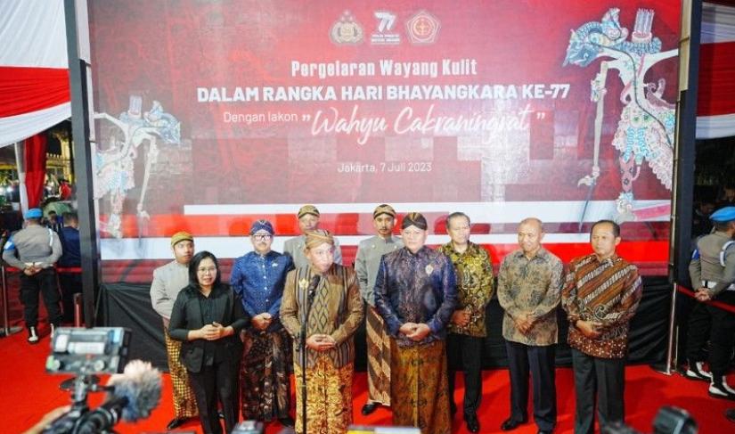 Penarafflesia.com - Gelaran wayang kulit dengan lakon Wahyu Cakraningrat yang dihelat Polri di lapangan Bhayangkara, Jakarta Selatan, Jumat malam, 7 Juli 2023 mendapat apresiasi dan sambutan positif dari masyarakat. Kegiatan ini merupakan bagian dari rangkaian Hari Ulang Tahun (HUT) ke-77 Bhayangkara.