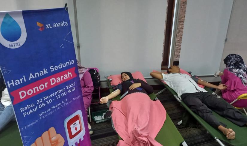 Penarafflesia.com - Untuk memperingati Hari Anak Sedunia, PT XL Axiata Tbk (XL Axiata) bersama komunitas jurnalis di Medan menggelar aksi donor darah yang rutin dilaksanakan di kantor Grha XL Medan, Jalan Diponegoro No 5 Medan, Rabu (22/11). Hasil dari aksi sosial ini akan disalurkan kepada Yayasan Onkologi Anak Medan (YOAM) untuk selanjutnya didistribusikan ke anak-anak penderita kanker.